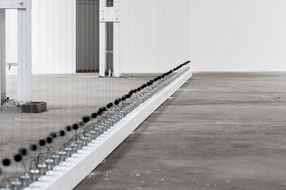 49 prepared dc-motors, felt, cardboard, 2014