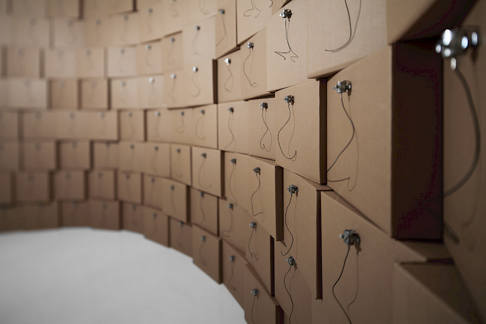 44 speaker membranes, drawers, 2005